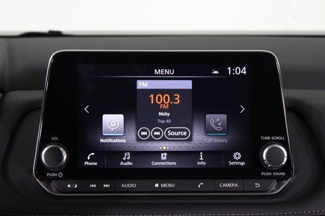 - Radio: AM/FM NissanConnect -inc: 6 speakers plus 2 tweeters, Apple CarPlay, Android Auto, 8" color touch screen display, Bluetooth®, 2 front USB type-C, Wi-Fi hotspot and NissanConnect Services powered by SiriusXM