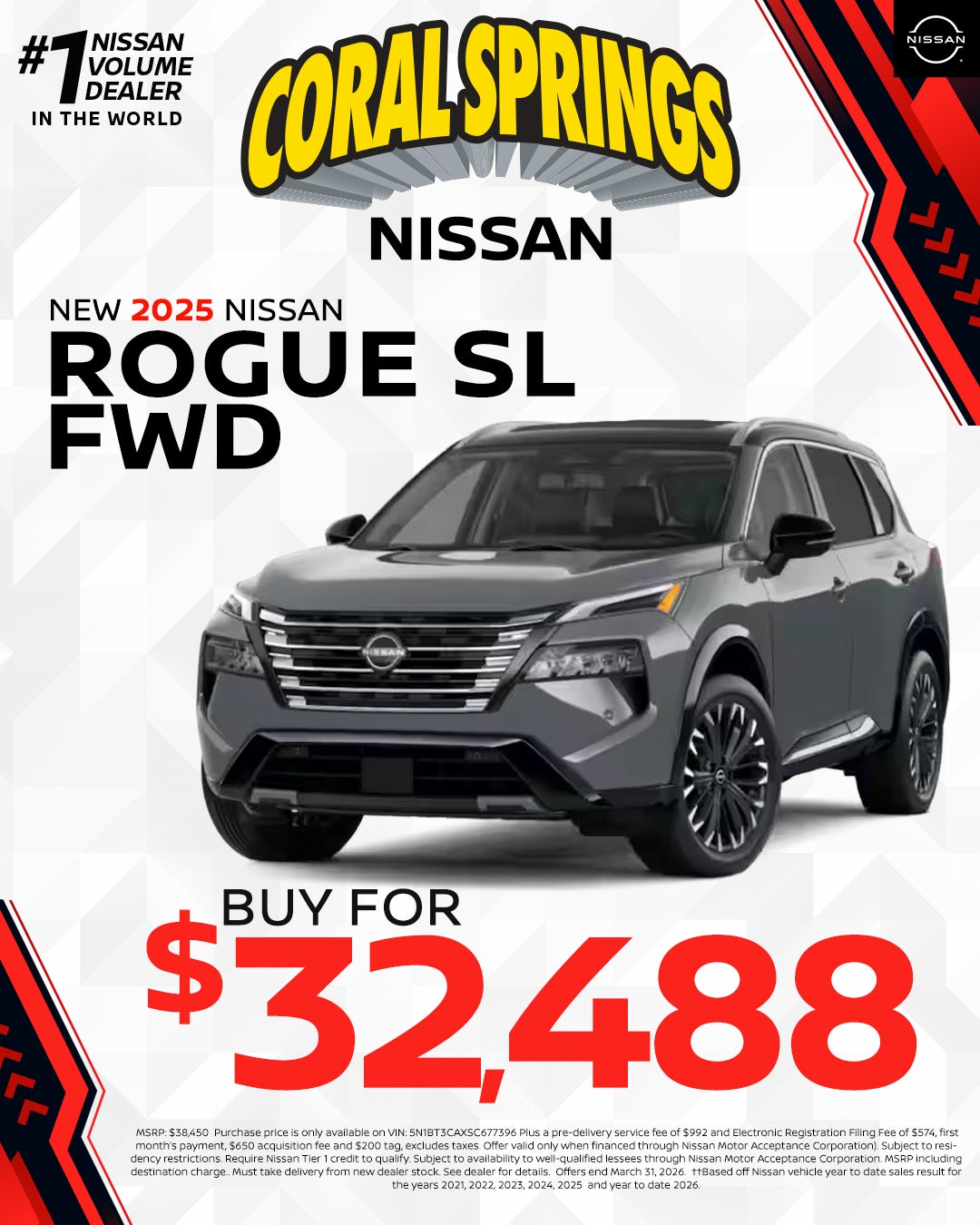 All pricing is for in-stock units only. All new vehicle pricing includes $1,500.00 financing credit through dealers preferred lender. Residency Restrictions apply. Special APR offers are for well qualified buyers with Tier 1 approval through NMAC. Offers are not combinable with any other offers or purchase programs. Must Finance with dealers Preferred lender (Non Special APR.) We strive to make sure all pricing and incentives are correct however errors do occur and we are not responsible for any errors that may be displayed on our site or any 3rd party site. Please contact dealer for complete offer details and any other questions. Pricing DOES NOT include: $992 Dealer Services Fee , Tax, Title, $574 E-File Fee, Registration, or $695 Lease Acquisition fee (if applicable.) Incentives and special APR available are only for the date shown and are subject to change at anytime without notice. Offer expires at month end, please see dealer for details. Prices and payments may not include an optional $1,598 Coral Springs Advantage Package.. .